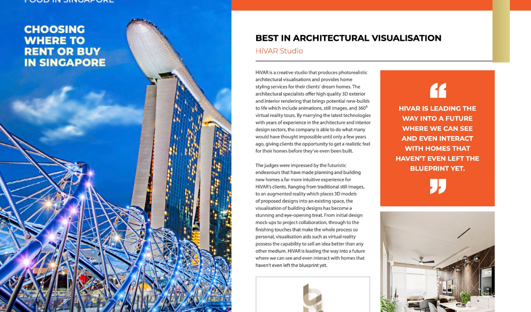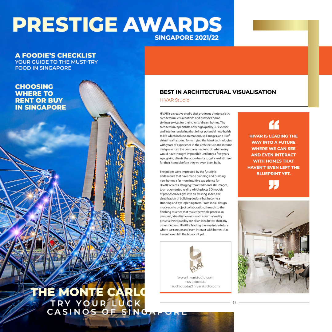 Achievement: We are thrilled to announce that HiVAR Studio has just been chosen as the 2021 winner in the category of Best in Visual Rendering Technology by the Singapore Business Magazine, Prestige Awards! Thank you so much for this recognition and we thank all of our clients, colleagues and vendors as well for making this happen.