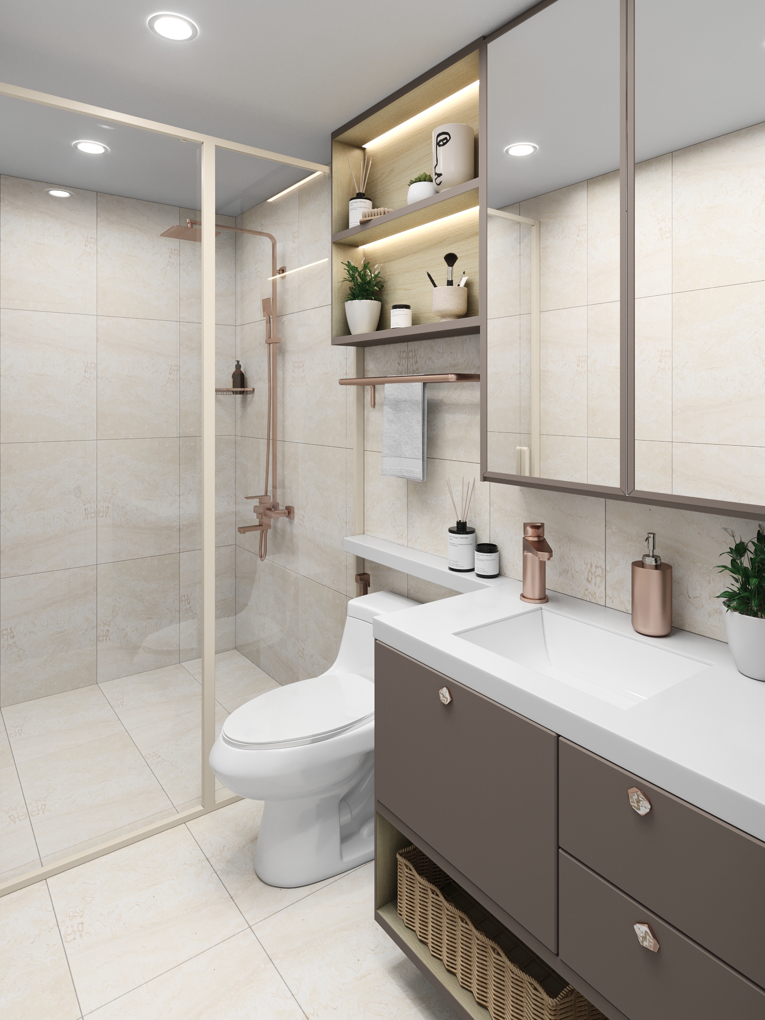 Our clients and us at HiVAR Team are loving the modern luxe theme of this condo renovation we did in Bukit Batok. You can see how we utilised the use of cove lighting to add extravagance without trying too hard, the smart choice of bright colors to add space and depth, the use of gold and rose gold accents to be on trend, and the play of textures to give each room its unique identity and character. Most furnitures were also flushed to give that modern and clean finish.