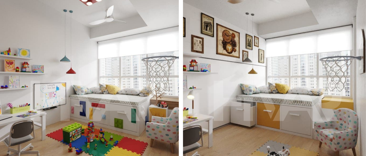 2. When it comes to colours, keep in mind that young children may not have a strong sense of colour yet. So instead of going with bright hues, stick to more muted tones that will be calming and soothing for them.